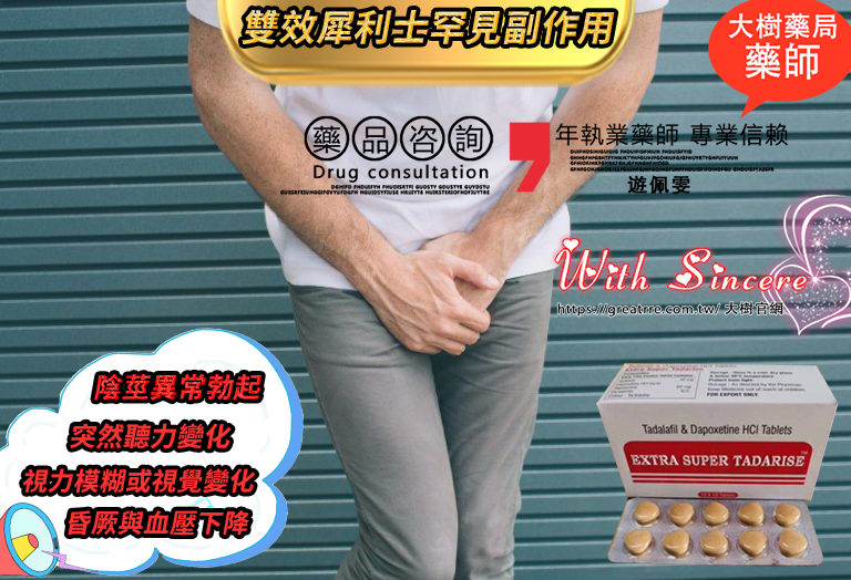 當患者購買雙效犀利士後,經常會關心其可能產生的副作用。例如,許多患者會詢問:「服用後會對身體造成傷害嗎?」或「雙效犀利士副作用是否嚴重?如何避免副作用?」隨著網路資訊的普及,患者對藥物副作用愈加重視,不僅關心藥物的療效,也擔憂可能帶來的副作用。