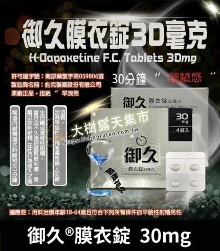 必利勁學名藥|御久膜衣錠 dapoxetine 30mg 延時持久 (4粒)