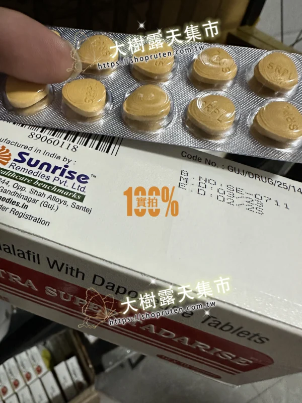 Super Tadarise印度雙效犀利士是一種強大的藥物,逐漸成為台灣眾多男士的認可和青睞,它的效果非常顯著,可以幫助男性治療陽痿和早洩。 印度Super Tadarise雙效犀利士成份為他達拉非與達泊西汀。每1粒SUPER TADARISE超級雙效犀利士包含他達拉非40mg(1粒犀利士)+ 達泊西汀60mg,具有助勃與延時雙重功效。因其效果非常猛,建議房事提前1-3小時服用,並且配一大杯溫開水。